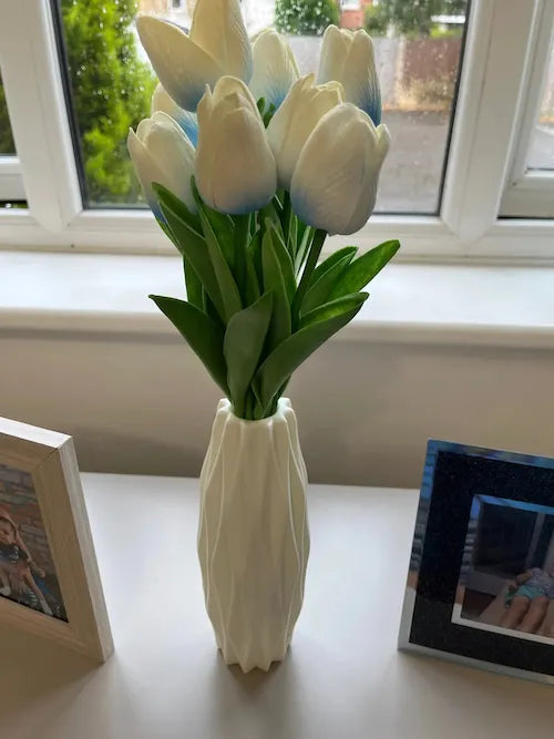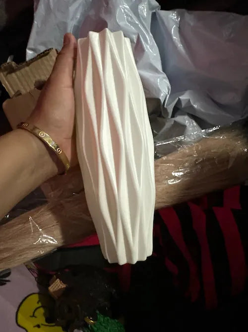 Ok, I was skeptical at first, but WOW! This vase totally exceeded my expectations. It's not just a vase; it's a piece of art. The diamond pattern looks so luxurious and modern. My friends all think it's ceramic 😆. Plus, it's super lightweight yet feels really sturdy. I put it in my office, and it's the first thing people notice when they walk in. Totally worth every penny. Gonna buy another for my mom's bday ❤️🥳.